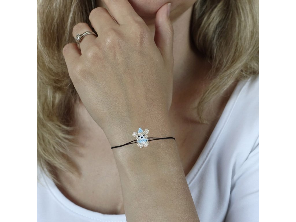 - Díky posuvným uzlíkům na nylonové šňůrce se náramek přizpůsobí téměř každému zápěstí.
