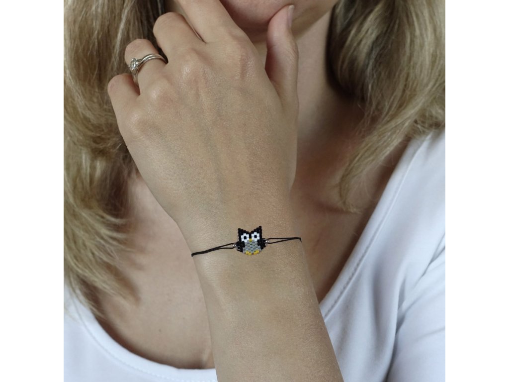 - Díky posuvným uzlíkům na nylonové šňůrce se náramek přizpůsobí téměř každému zápěstí.