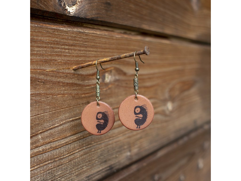 - Jsou vyrobeny z hlazené třísločiněné hovězí kůže, ozdobené gravírovaným motivem a pověšené na bižuterním afroháčku.